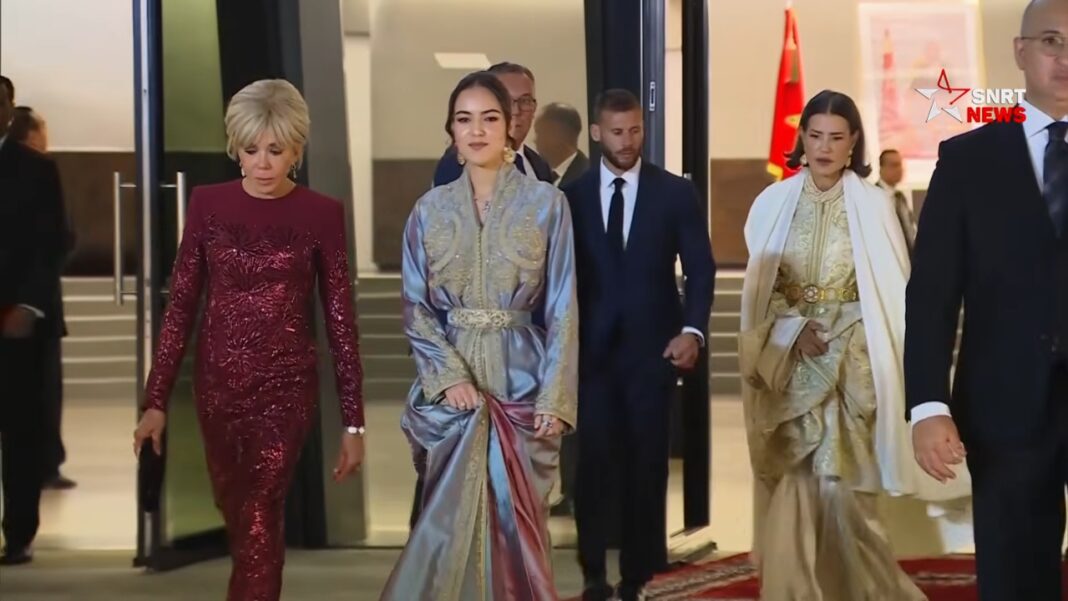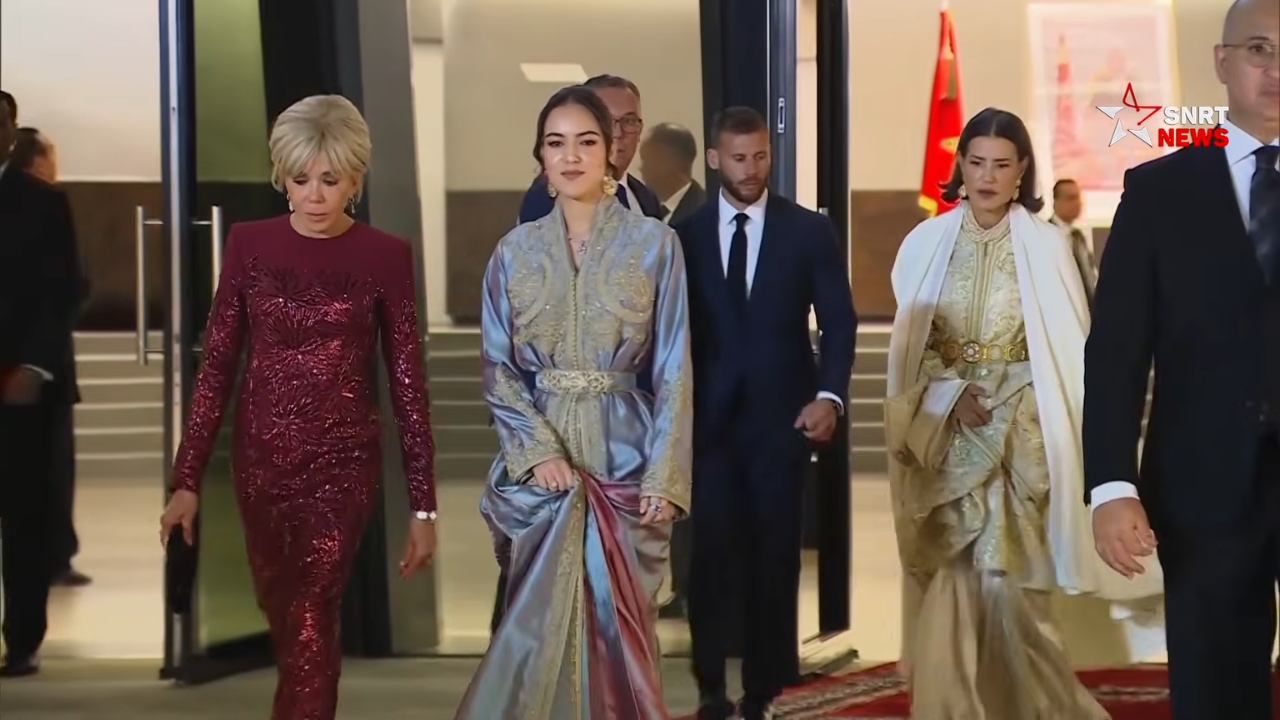La présence de LL.AA.RR les Princesses Lalla Meryem et Lalla Hasnaa donnait à la scène sa pleine densité. Filles de Feu SM Hassan II, sœurs de Sa Majesté le Roi Mohammed VI, elles inscrivaient d’emblée l’image dans la continuité de cette grâce de rang, de cette tenue sans apprêt et de cette élégance de mesure qui composent, depuis des générations, l’une des signatures les plus subtiles de la famille alaouite. Entre elles, Lalla Khadija apparaissait moins comme une jeune silhouette mise en avant que comme l’expression déjà lisible d’une transmission assurée. Sous Hautes Instructions Royales, cette présence féminine princière disait aussi l’importance que le Souverain attache à la culture, non comme simple décor du prestige, mais comme l’un des langages les plus élevés du rayonnement du Royaume. Elle marquait enfin une attention particulière à l’endroit de Mme Brigitte Macron, dont les déplacements solitaires dans le champ de la diplomatie culturelle restent exceptionnels, et qui siège au Conseil d’administration de la Fondation du Théâtre Royal de Rabat.